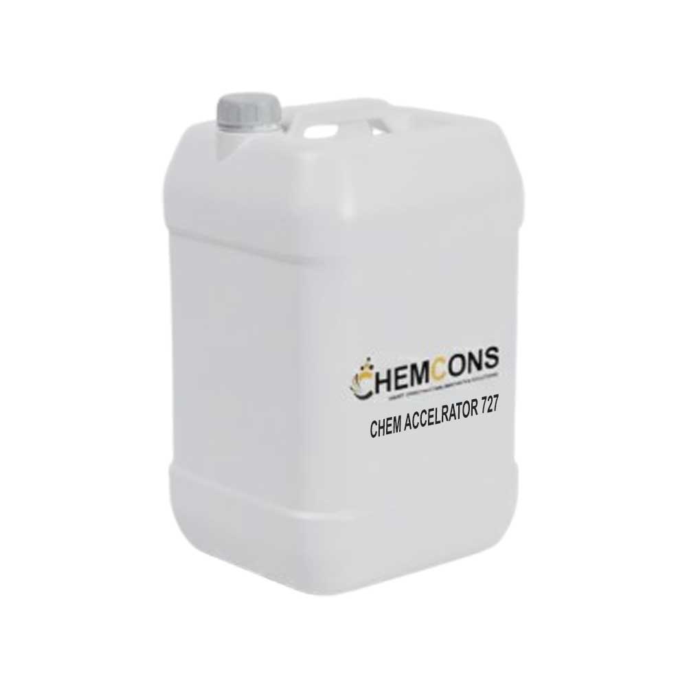CHEM ACCELERATOR 727 (Dynamic Strength Accelerator) is a naphthalene base non-chloride, water-reducing admixture for concrete specifically designed to address the fast-track construction needs of the concrete industry. At cooler temperatures, conventional accelerators reduce initial setting times. CHEM ACCELERATOR 727 will not only accelerate initial setting characteristics significantly, but rather achieve high early compressive strengths.
